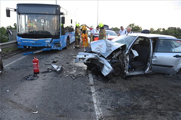 Összeütközött egy busz és egy személyautó Budapest XX. kerületében, a Szentlőrinci úti felüljárón, az érintett útszakaszt teljes szélességében lezárták – közölte a katasztrófavédelem a honlapján.