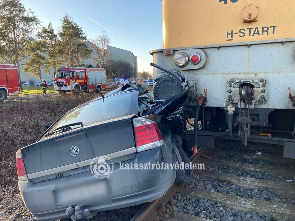 Mint írták, a baleset a bevásárlóközpont mögötti vasúti átjáróban történt. Az autóban ketten utaztak, a sofőrt a tűzoltók a mentőkkel közösen emelték ki a járműből.