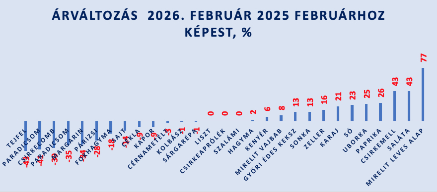 Mint a Hírklikk olvasói már megszokhatták, az élelmiszerárak három évvel ezelőtti elszabadulása óta hónapról-hónapra mi is közzétesszük a saját virtuális bevásárlókosarunk árváltozását. Az élelmiszer-kosarunk tartalma az adatfelvétel módja miatt technikai okkal magyarázhatóan nem egyezik meg a megelőző havi kosaraink tartalmával: a cikk szerzője által kedvelt online élelmiszer „ábécé” felületén mód van visszanézni az egy évvel korábbi saját vásárlási számlákat, így annak egyes tételeit össze lehet hasonlítani az egy évvel későbbi – esetünkben most éppen a 2026. februári – árakkal. Ám az egy évvel korábbi, éppen terítéken lévő hónapban nem feltétlenül ugyanazok a termékek kerültek a mi kosarunkba, mint most, így értelemszerűen a vásárlói kosaraink is eltérnek egymástól. Így a mi „inflációink” nem reprezentatív (már csak azért sem, mert a saját fogyasztásunkat és nem az átlagosat képviseli), nem tudományos, de februárra iránymutatónak mondható. És az biztos, hogy mi ennyivel fizettünk többet 2026. februárjában ugyanazért (márka, kiszerelés, besorolás) a termékért, mint egy évvel korábban.