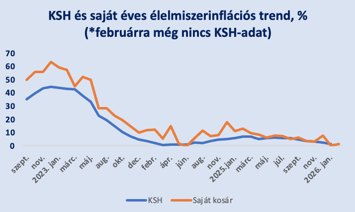 Miközben az előző hónapokban szinte teljesen egyenletesen lefelé tartó trend jellemezte a hazai élelmiszerinflációt, könnyen lehet, sőt, szinte bizonyosra vehető, hogy megszakad a sorozat. Nem csak nálunk, hanem globálisan is emelkedő energiaárakkal, no meg bizonytalanságokkal, s persze mindennek az összes folyományával kell reálisan számolni a Közel-Keleten kialakult, és egyre eszkalálódó helyzet miatt, amit az Egyesült Államok és Izrael által az iráni fundamentalista vezetés megölését is eredményező támadás indított el. Mindenesetre februárban még szépen alakultak a dolgok: a hazai élelmiszer-árak mindösszesen 1,4 százalékkal nőttek az előző év azonos időszakához képest. Borítékolhatóan visszasírjuk ezt majd a következő hónapokban.