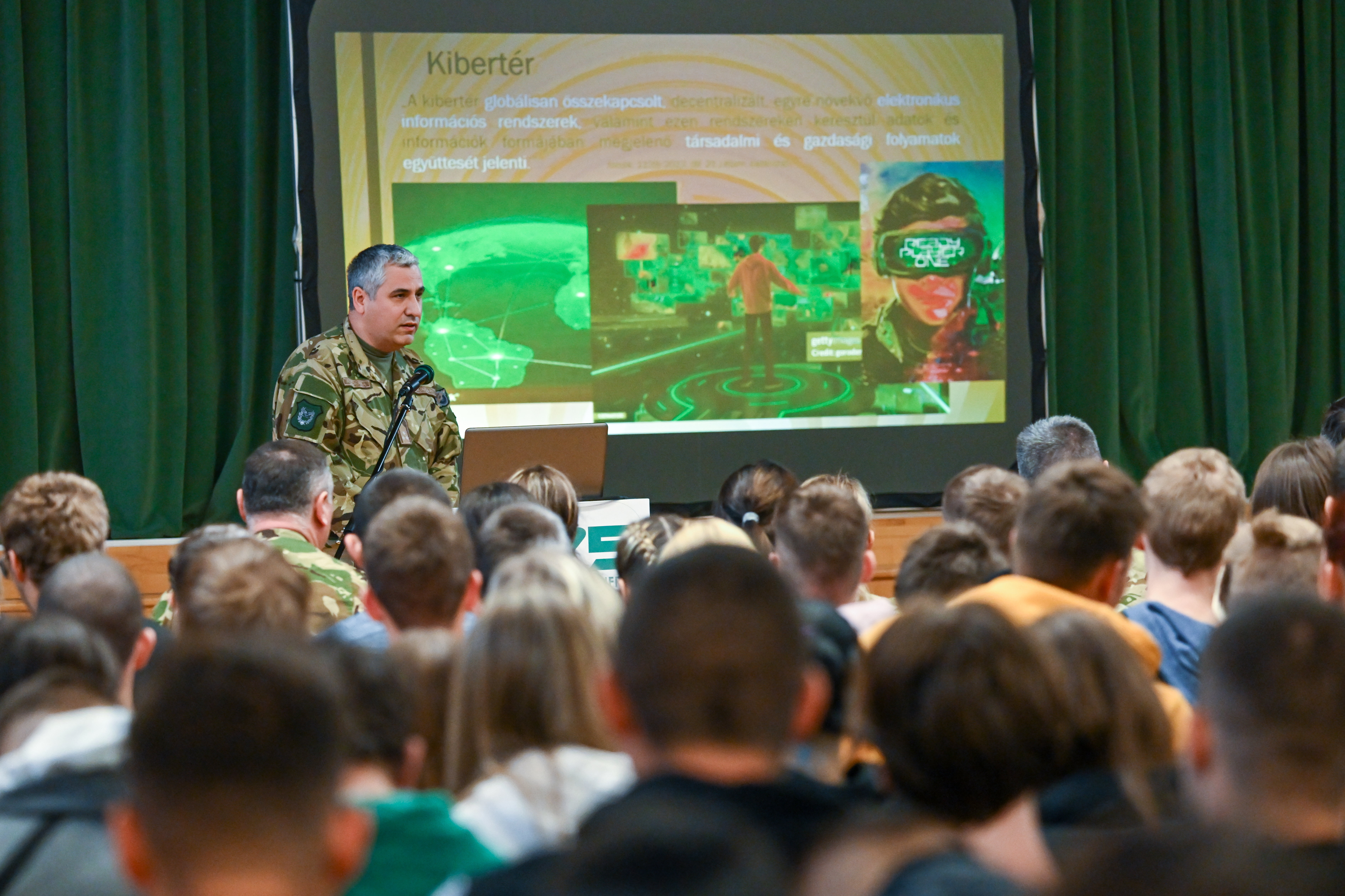 Felhívta a diákok figyelmét az innováció fontosságára, mint egy olyan eszközre, amivel Magyarország sokat tehet védelmi képességeinek fejlesztése érdekében.