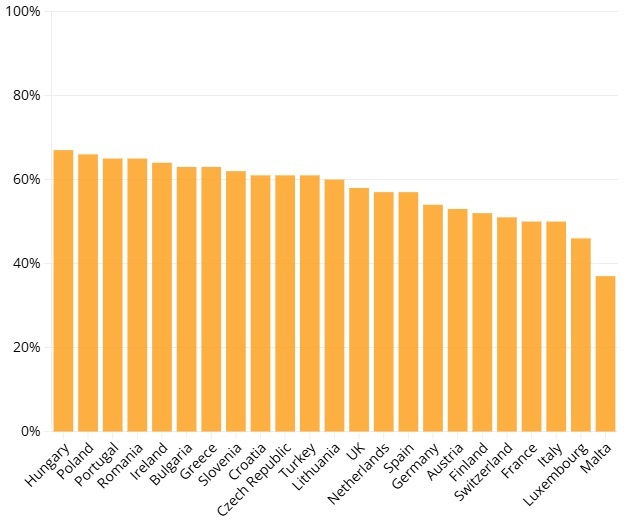 Ez az arány Hollandiában és Portugáliában a legmagasabb -– mindkettő 33 százalék –, és különösen a Z generáció körében (35 százalék), akik Európa-szerte kevésbé individualistának, vagy talán pragmatikusabbnak tűnnek, mint idősebb, ezredfordulós testvéreik (25 százalék).