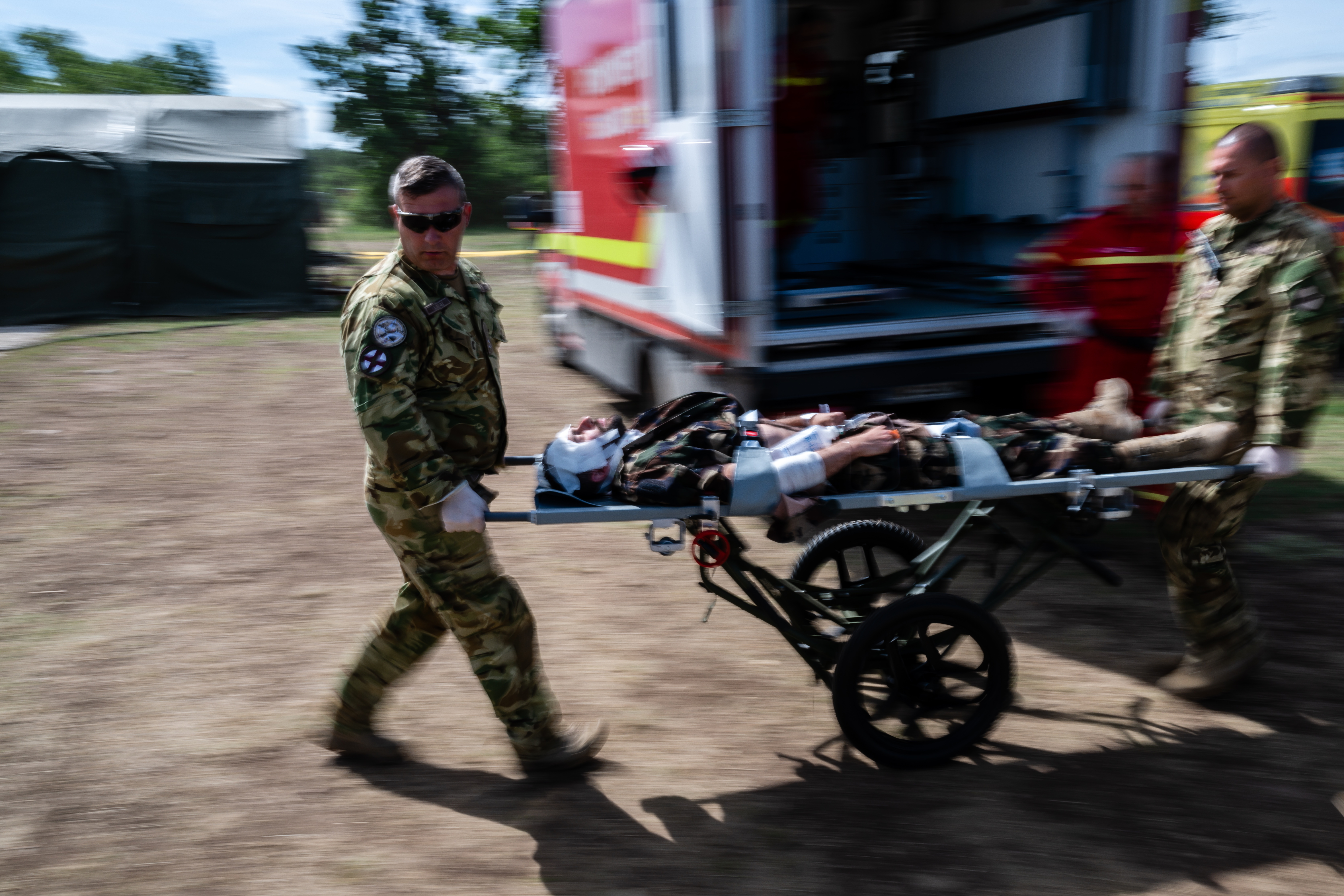 A NATO és egyben a világ legnagyobb, többnemzetiségű katona-egészségügyi gyakorlata zajlik a Magyar Honvédség bakonykúti gyakorlóterén.