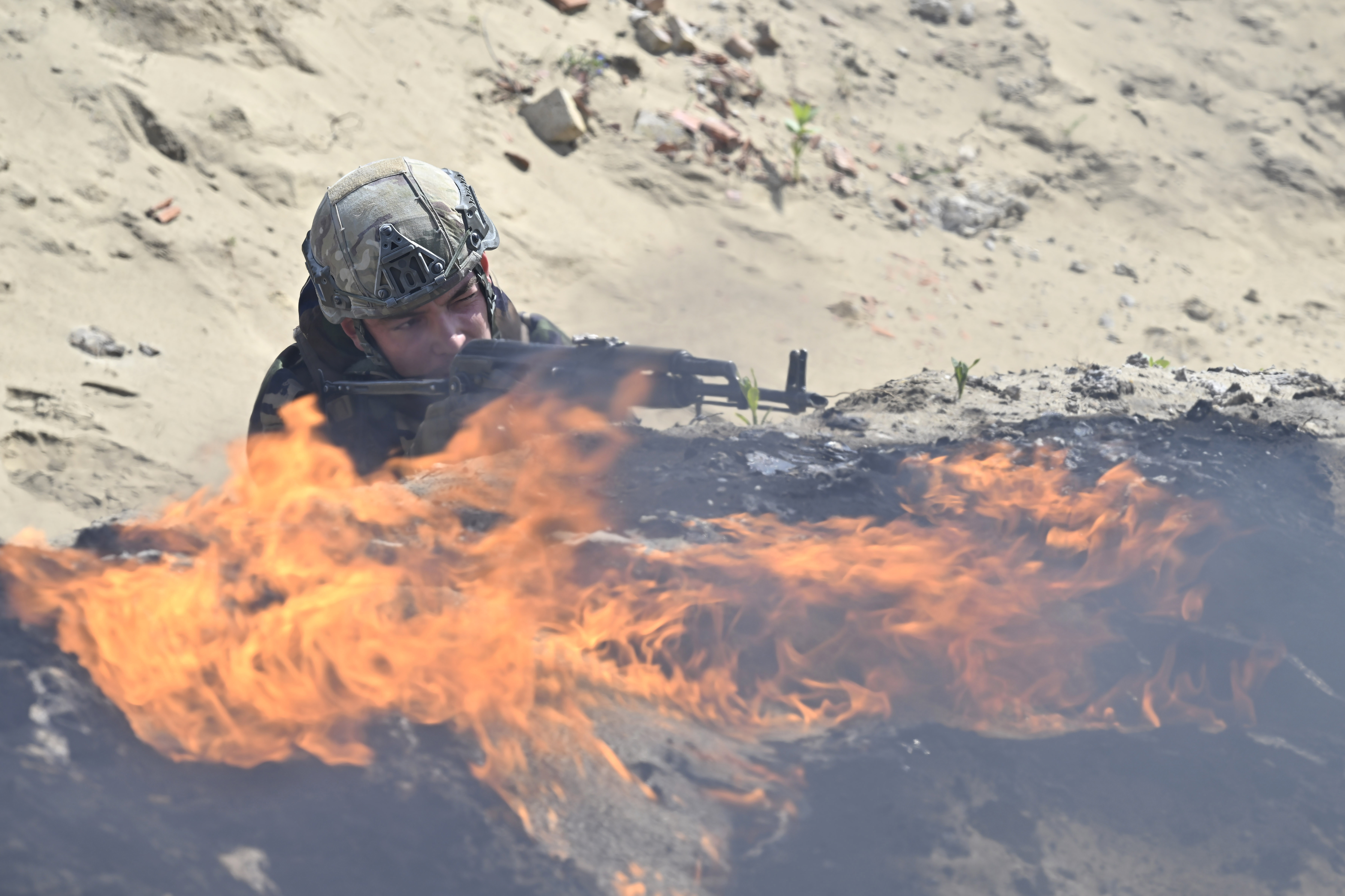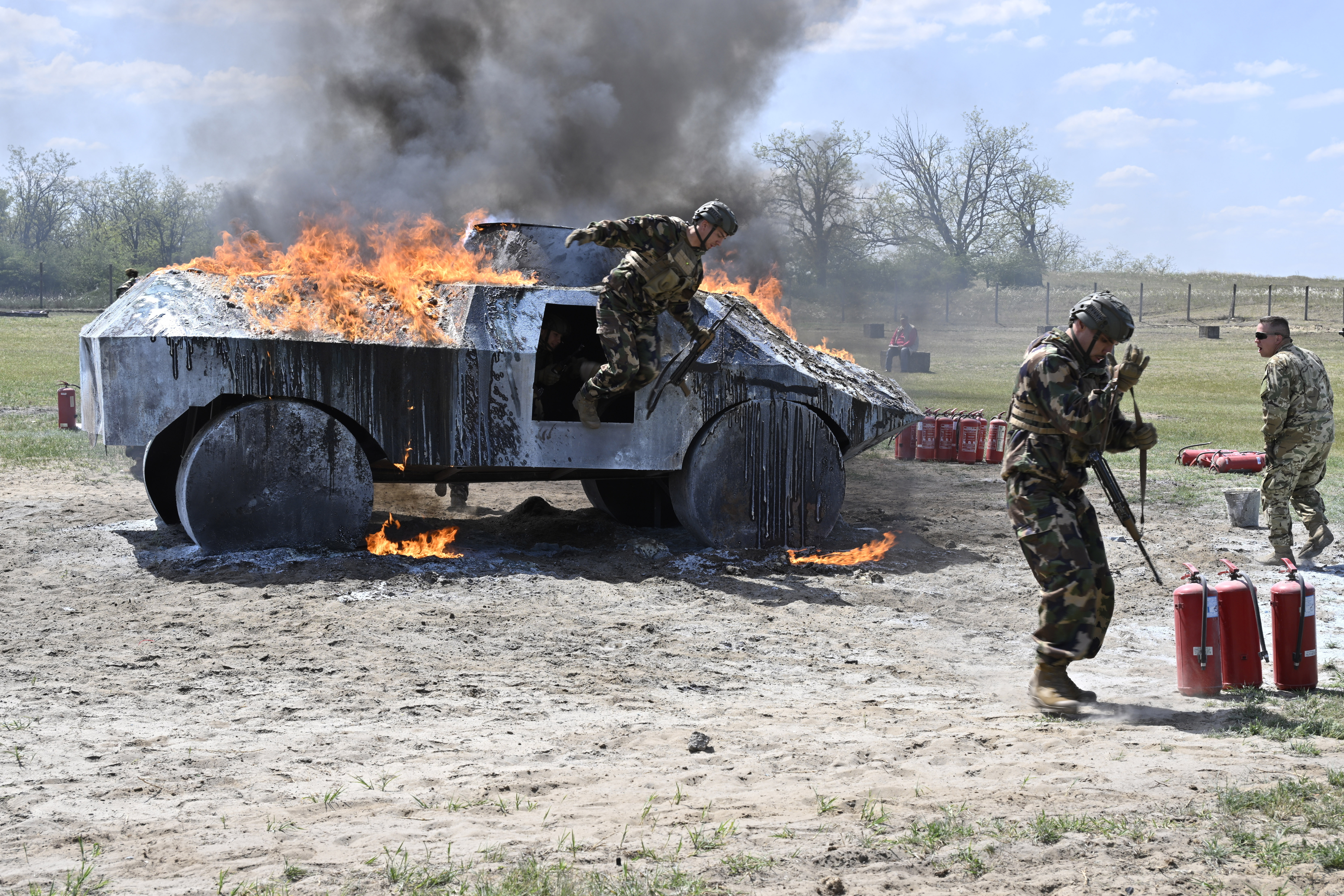 A kiképzési feladatok között volt a kiugrás égő harci járműből, majd a tűz eloltása, illetve sebesült kimentése harci árokban, harci érintkezés közben. Tüzes akadálypályán is át kellett küzdeniük magukat a katonáknak – fűzte hozzá a százados.