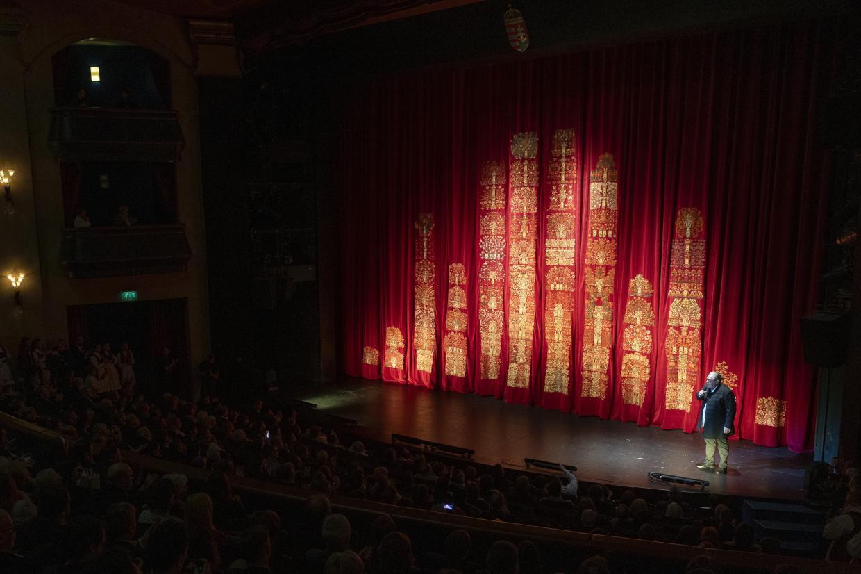 „Amikor felgördül ez a díszfüggöny, ilyen pillanatnak vagyunk tanúi. Nem pusztán egy színházi kelléket avatunk, a Nemzeti Színház új függönye, a magyar nemzet szövetbe hímzett története, a közös emlékezet és a közös jövő" – fogalmazott.