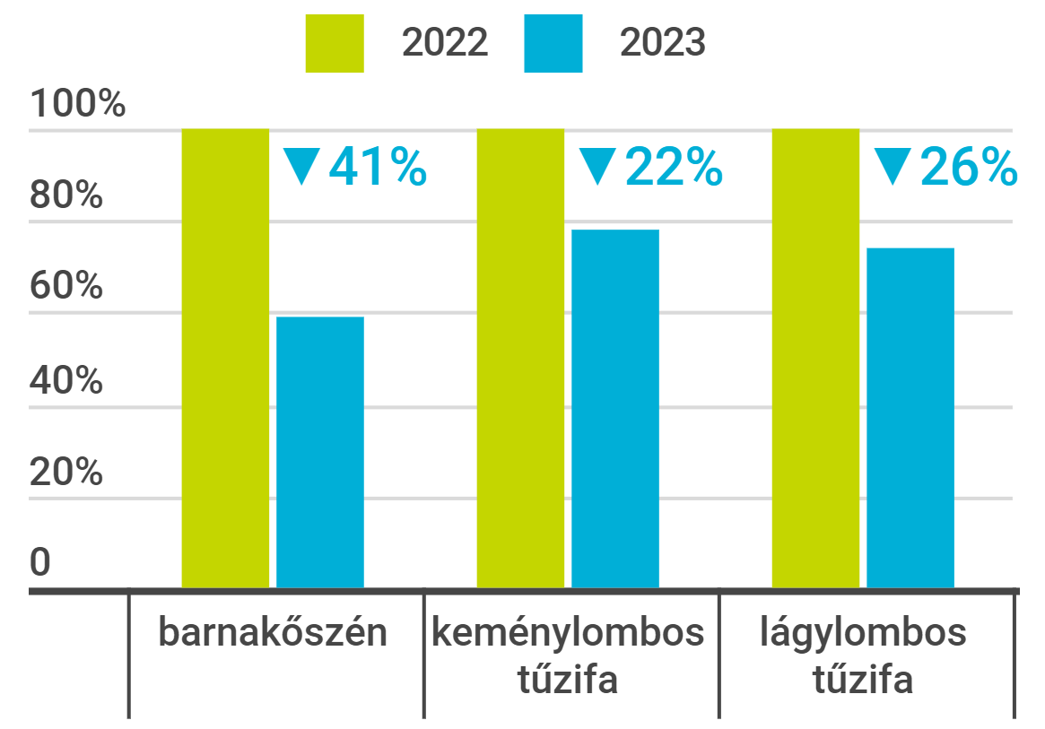 Az országosan megítélt tüzelőanyag mennyiségek változása