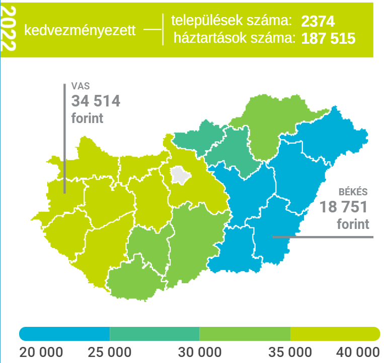Ezért történhet meg, hogy amíg a Békés vármegyében lévő pusztaottlakai háztartásokra 5 438 forint jut szociális tüzelőből, addig a Veszprém vármegyei Mezőlakon 100 584, de ha már a Borsod-Abaúj-Zemplén-vármegyében Nyéstán élő rászorulókat nézzük, akkor nekik 166 688 forintot tud adni az önkormányzat háztartásonként – olvasható a Habitat beszámolójában.