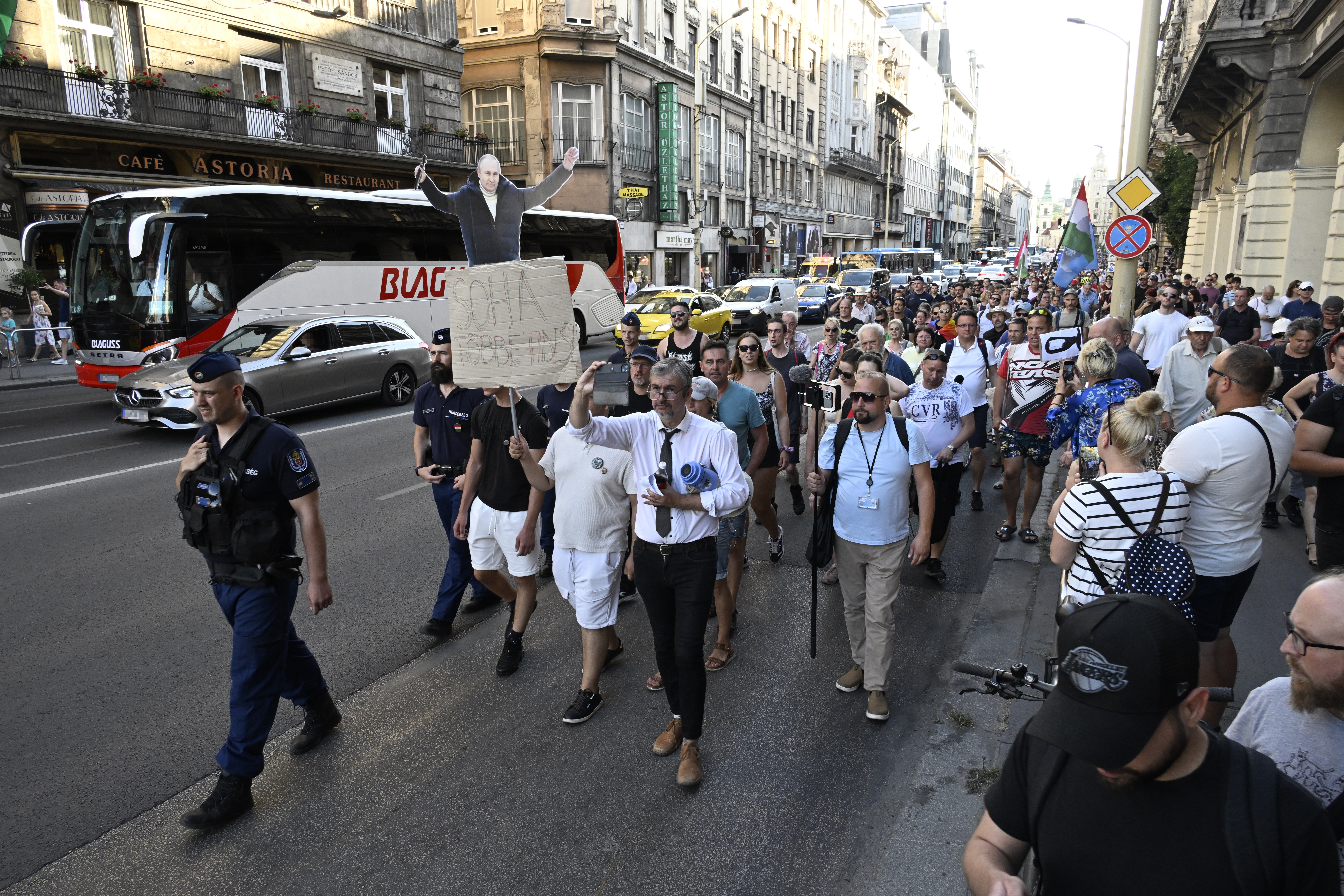 Hadházyék tizenhatodszorra tüntettek, a „technofasiszta" törvény visszavonását követelték