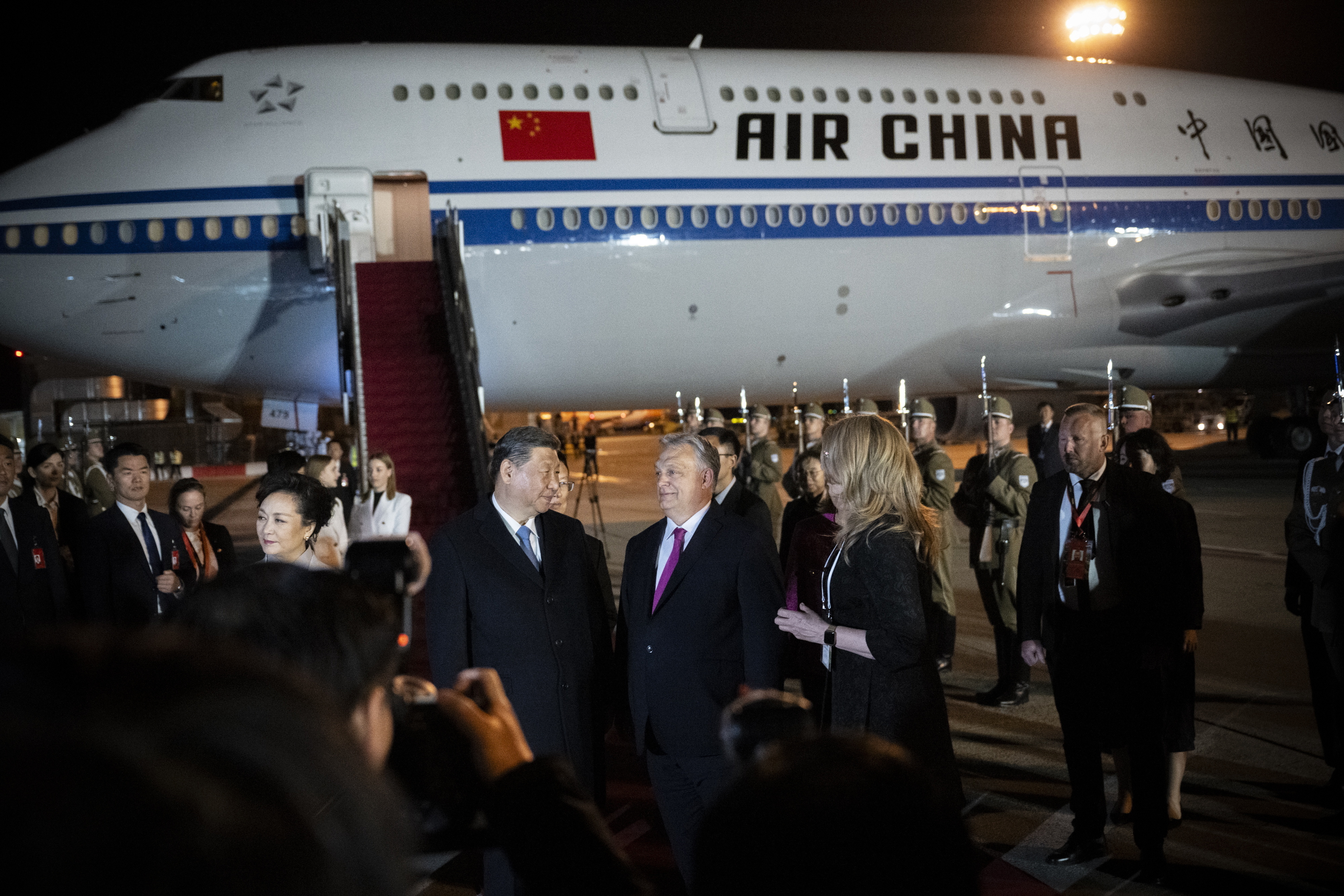 Megérkezett a kínai államfő, Orbán Viktor fogadta a repülőtéren