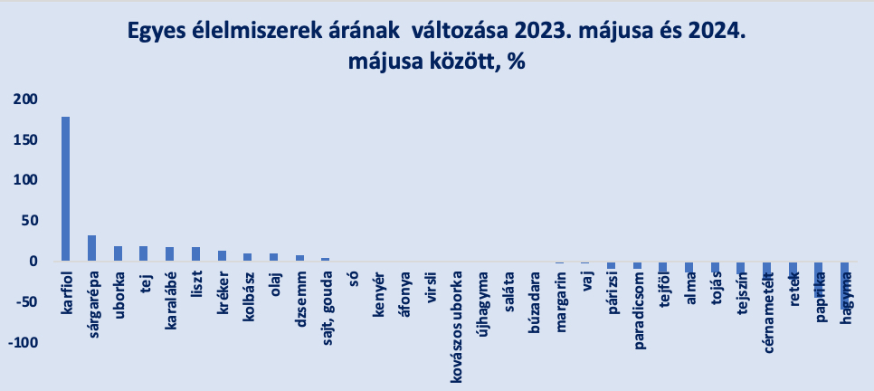 De essék pár szó arról, mit tapasztaltunk mi májusban. Összességében 2 százalékkal nőttek az árak 2023. májusához képest, ám a szórás talán minden eddiginél nagyobb volt.