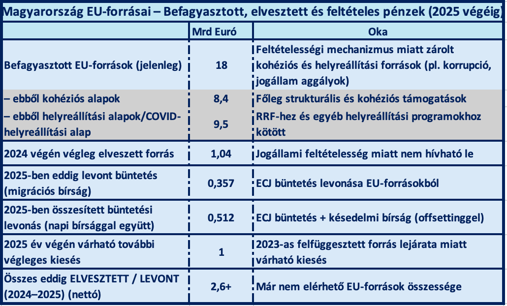 Csak jelzésszerűen álljanak itt azok az megközelítő összegek, amelyektől az elmúlt négy évben az Orbán-rezsim megfosztotta Magyarországot. Ennek a töredéke lenne, ha 400 milliárd forintot kellett volna átvállalnunk az Ukrajnának nyújtandó közös uniós támogatás részeként – de mint tudjuk, azt sem kellett volna, az is csak egy jól hangzó orbáni propaganda-szólam volt. Az Orbán hibájából elmaradó uniós támogatások eredményeként szenvedi el a magyar – persze több más adalékkal például a bűn rossz gazdaságpolitikával kiegészítve – stagnáló gazdaság, romló életszínvonal...