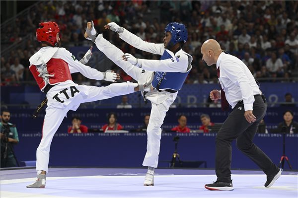 Salim Omar Gergely kikapott a tekvondósok 58 kilogrammos súlycsoportjának szerdai negyeddöntőjében a párizsi olimpián. Amennyiben legyőzője, a címvédő olasz Vito Dell'Aquila bejut a fináléba, akkor a bronzéremért folytathatja a vigaszágon.