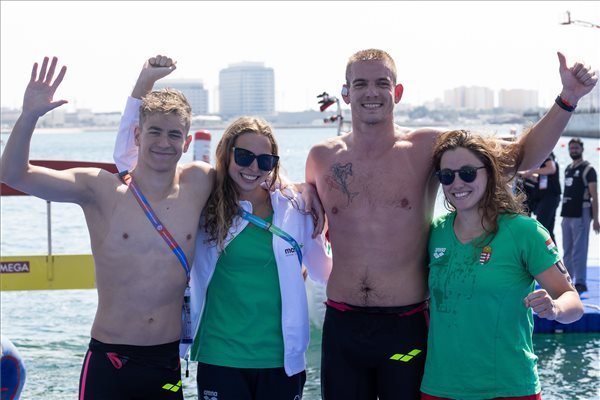 A Szimcsák Mira, Fábián Bettina, Betlehem Dávid, Rasovszky Kristóf összeállítású magyar váltó bronzérmet nyert a nyíltvízi úszók csütörtöki csapatversenyében.