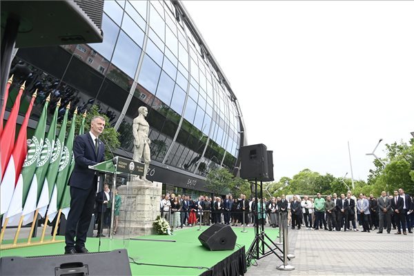 Kubatov Gábor beszédet mond a Groupama Arénánál tartott ünnepségen - MTI/Kovács Tamás