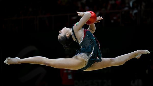 Pigniczki Fanni ezüstérmes labdával a ritmikus gimnasztika Európa-bajnokságán