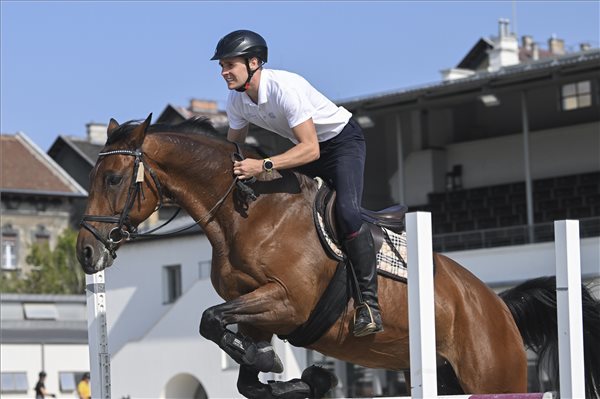 Szép Balázs öttusázó lovaglás edzése a Nemzeti Lovardában az olimpia előtt
